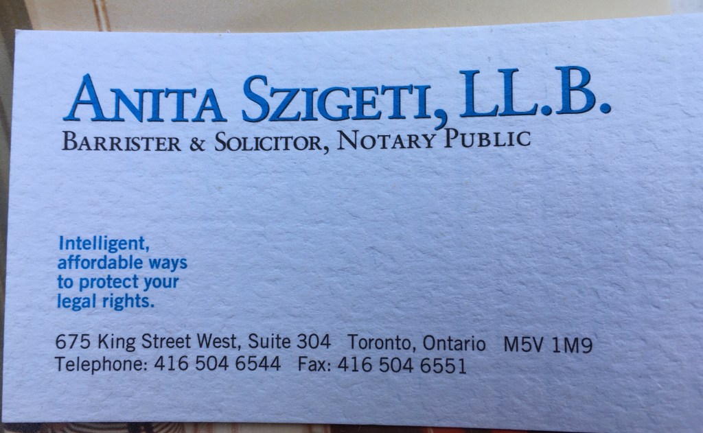 Here is a little bit of history on my first attempts at practising law on my own. Circa 1994. Decided to open a sole practice from my tiny rented apartment off Trinity Bellwoods. Advertised in the first edition of the Outrider sold for $1 by people living on the street.