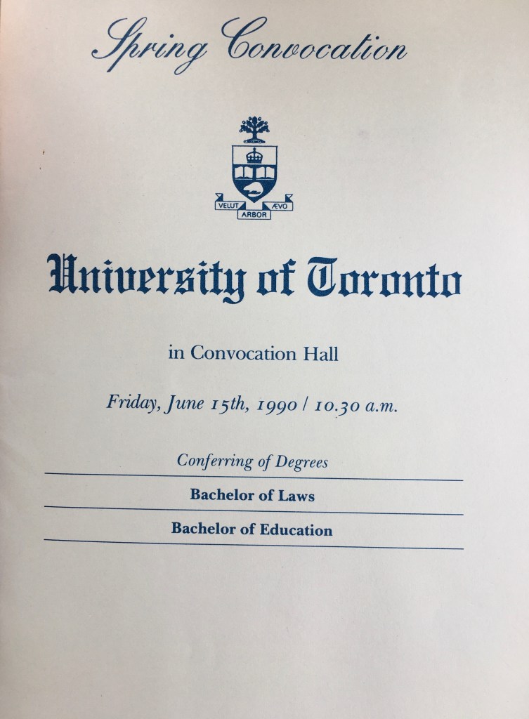 30 years. Wow. I graduated from the University of Toronto, Faculty of Law on June 15, 1990. The whole thing is a blur. But a happy one. Law School was an important formative experience. But it was not till I began practising on my own that I learned how to do just that. Here are some memories from that beautiful sunny summer day of celebration for my family at Convocation Hall at the U of T.