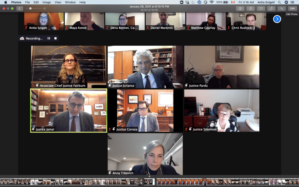 On January 28, 2021, at 5:30 -7:30 pm, six Justices of the Court of Appeal for Ontario will be discussing Zoom Advocacy with more than 100 appellate criminal lawyers, evenly distributed among Crown and Defence.