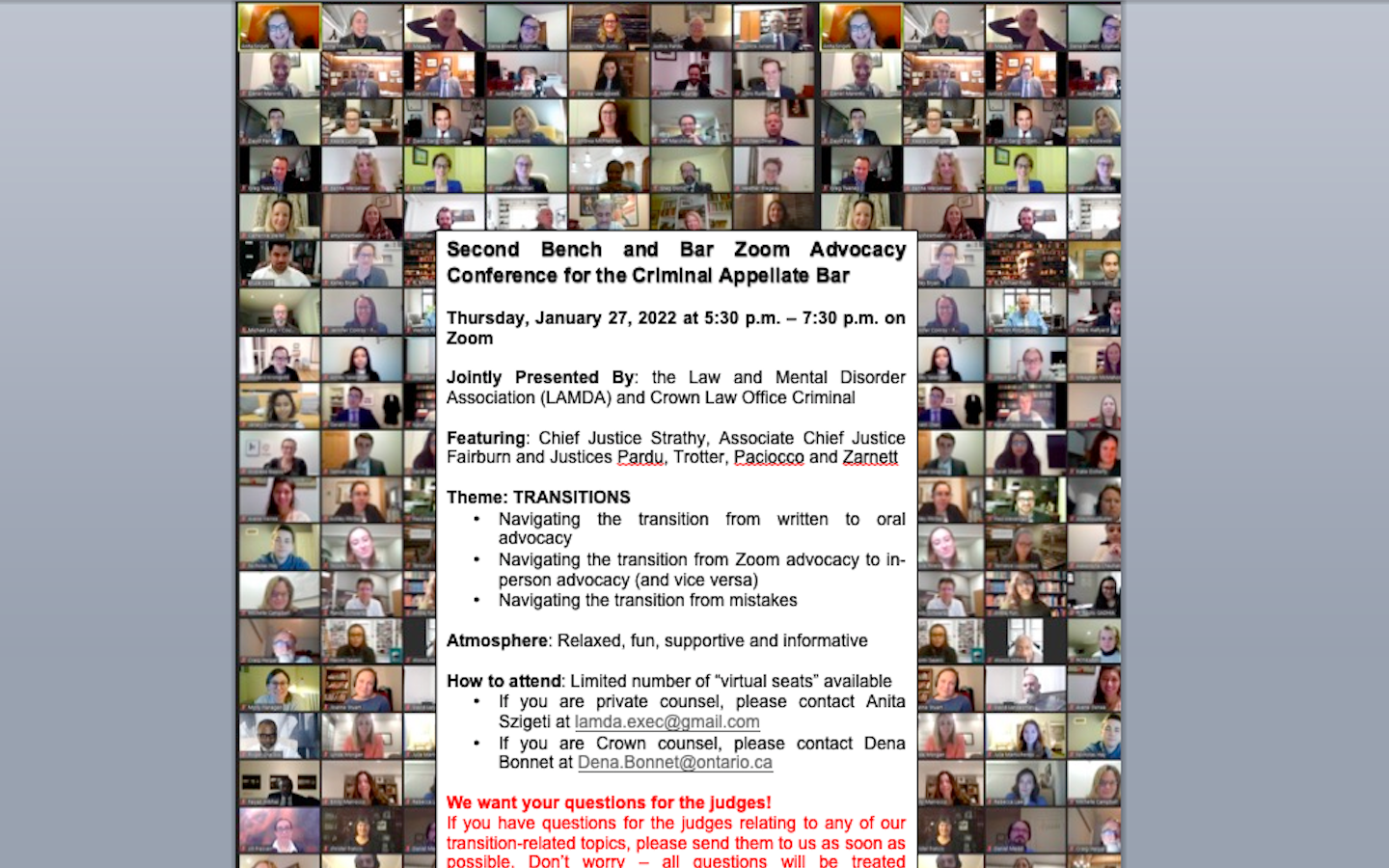 LAMDA & CLOC CO-HOST Second ADVOCACY CONFERENCE WITH SIX JUSTICES OF THE ONCA JAN 27 2022 including the CHIEF & ASSOCIATE CHIEF Justices of Ontario