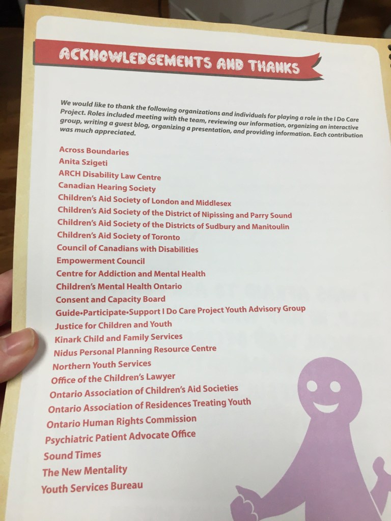 It was a true honour and a privilege to be retained by the Office of the Provincial Advocate for Children and Youth for this very important project many years ago when they were still in existence – that organization did so much to help our kids – it is missed