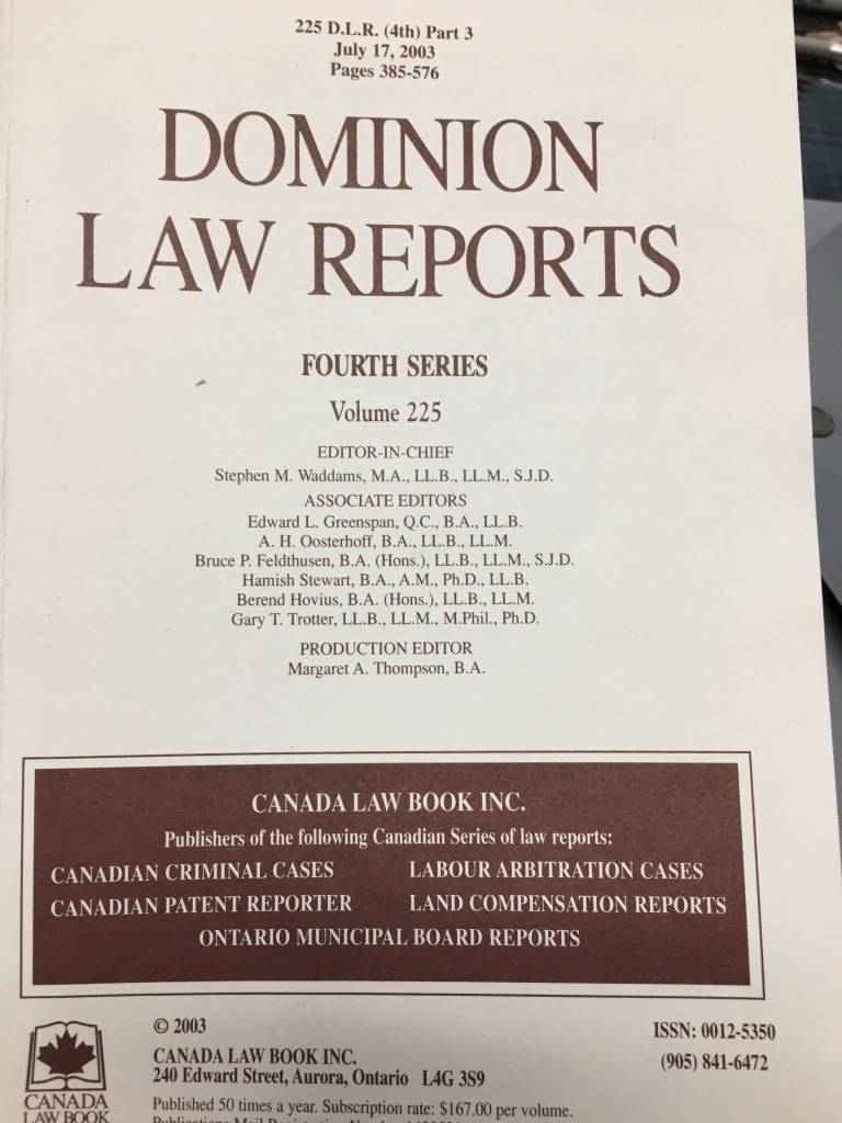 July 17, 2003 Edition of the DLRs – contains Starson, decided June 6 2003 – fast turn-around on this one! And check out the Editor and Associate Editors of this reporter series at the time!