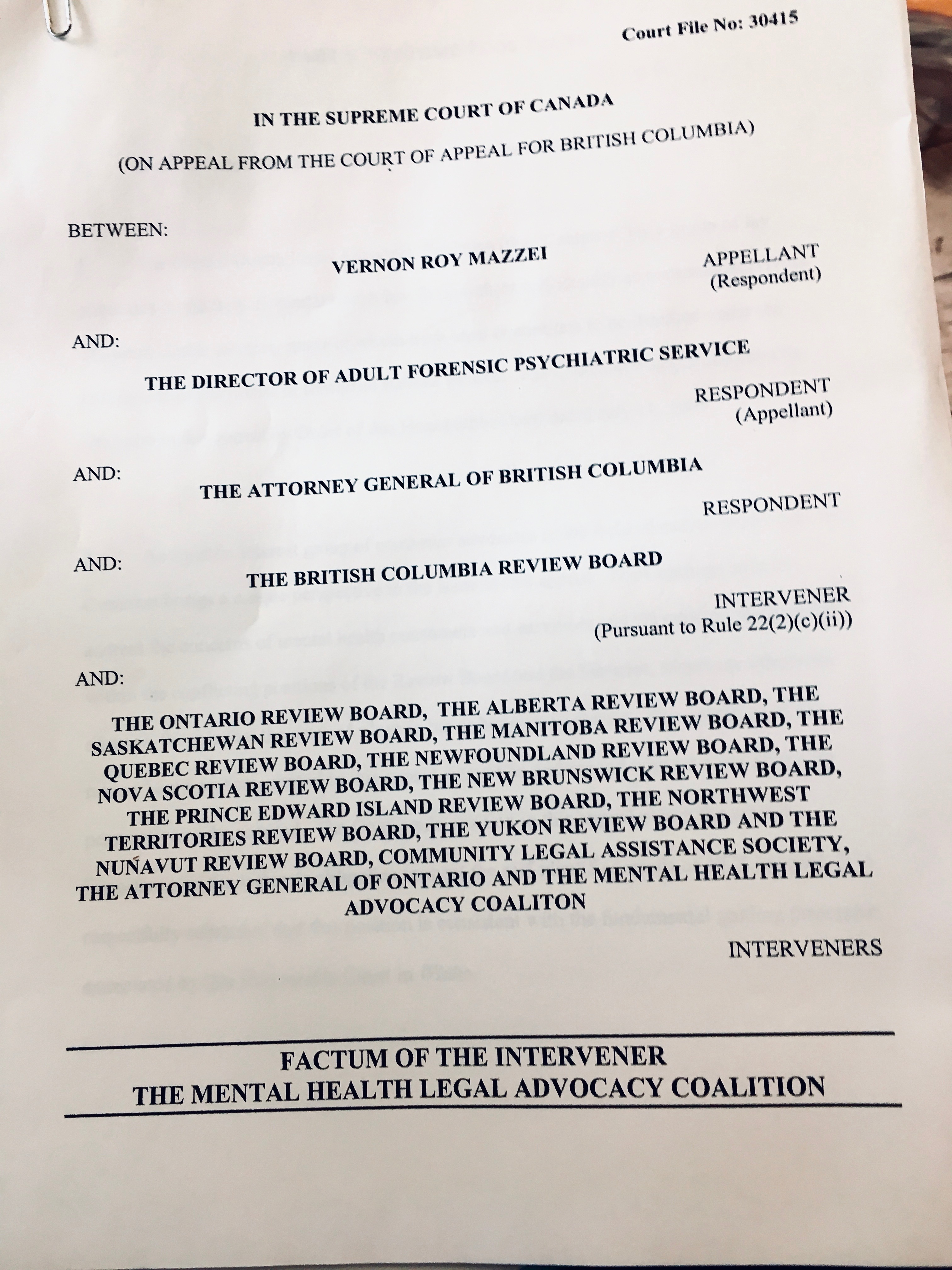 On November 14, 2005, the SCC heard this case, Mazzei. My client, the MHLAC, led by the late great Randy Pritchard was an Intervener. I had co-counsel but he was not available to attend for us. My second child, my son, was just six weeks old. I got on a midnight Greyhound bus at the Dundas St terminal to Ottawa, got in after 6 am, had breakfast in a diner until 8 am when the local YMCA opened, showered there, ironed my gowns, went to Court and got on the bus back to TO without ever seeing my co-counsel who lived and worked in Ottawa. A very long day, but one I’ve never forgotten – glad I did it.