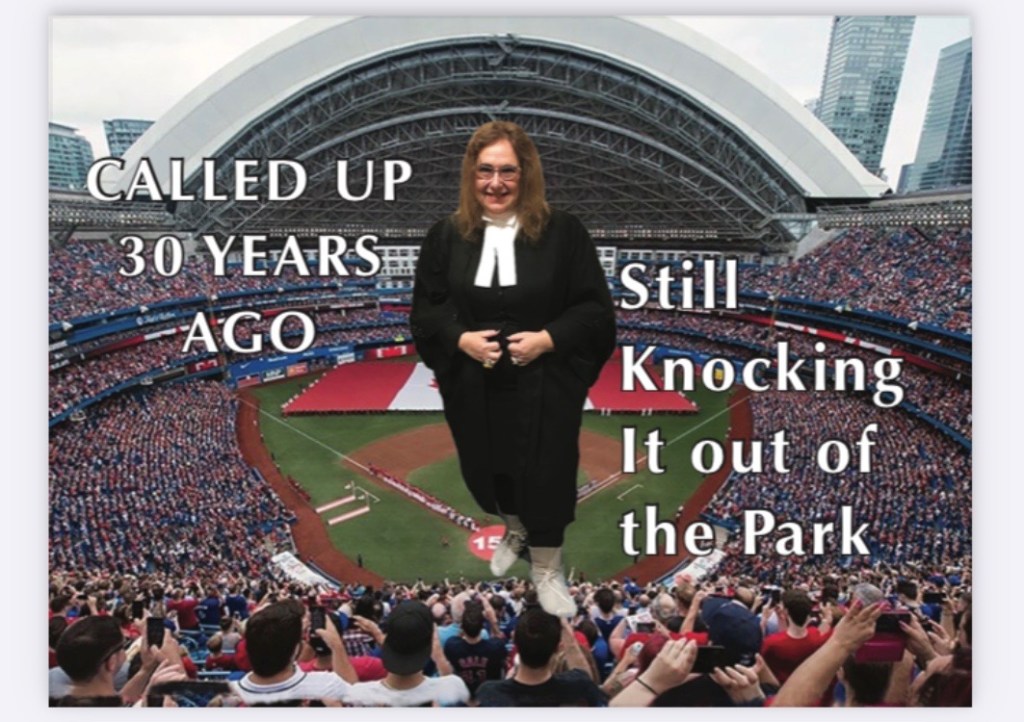 Co-incidence? I think not. I was called to the Bar on September 24, 1992 and exactly one month later, lo and behold the October 24th WS Win by our beloved Jays! I remember standing sandwiched between hundreds of others at the Wheat Sheaf Tavern that night while it all went down. It was louder and wilder than anything else I remember in my entire life. It was nice celebrating the anniversary by heading down to the ball park on August 27 of this year and seeing 15 of the winning team’s players in person there.