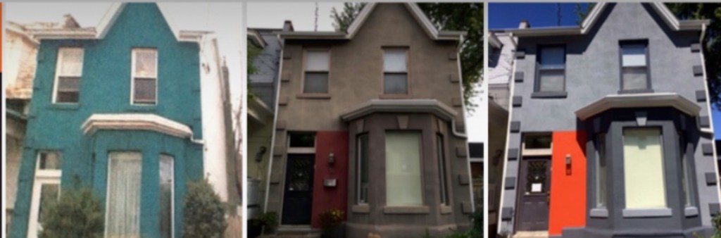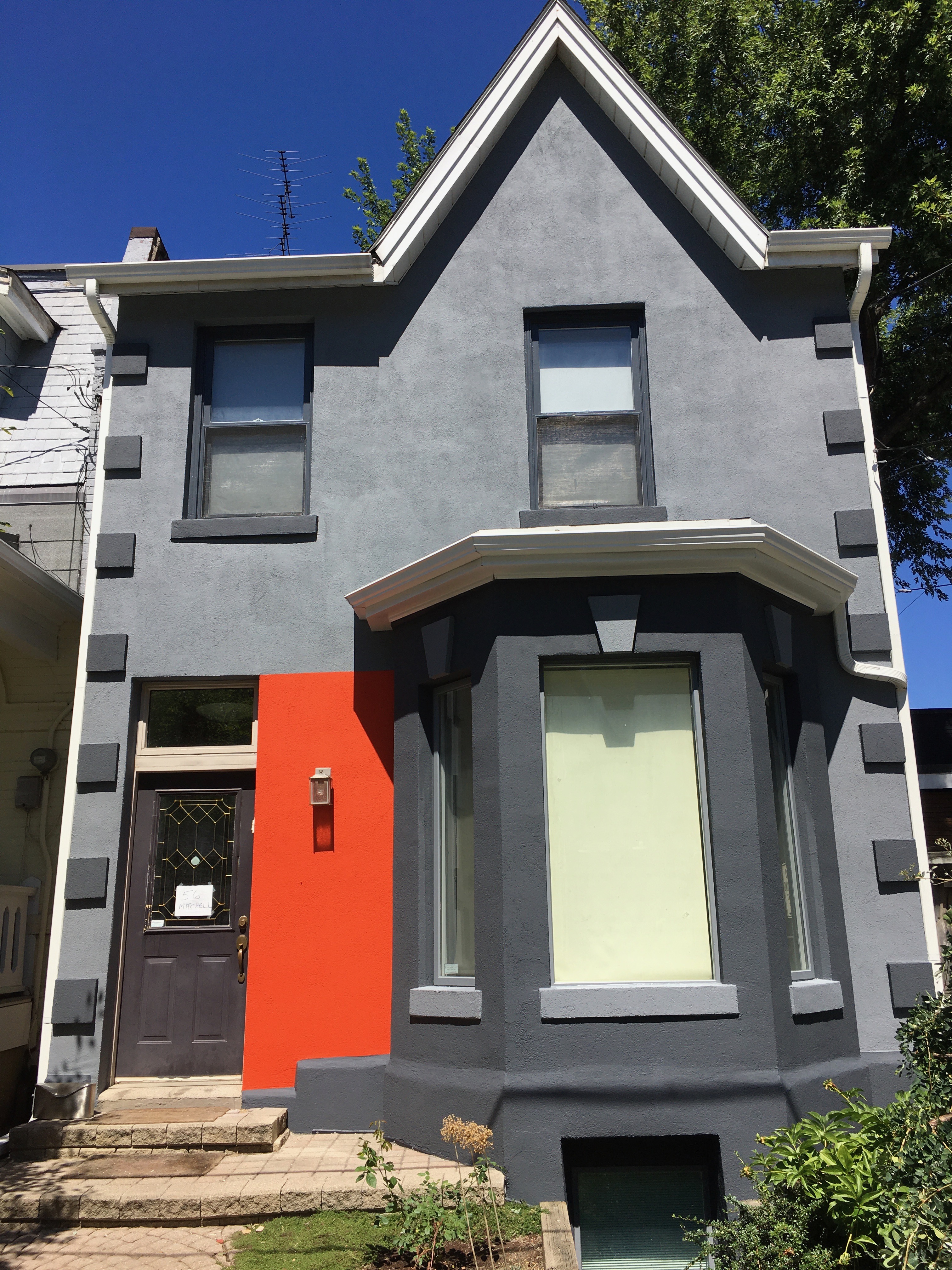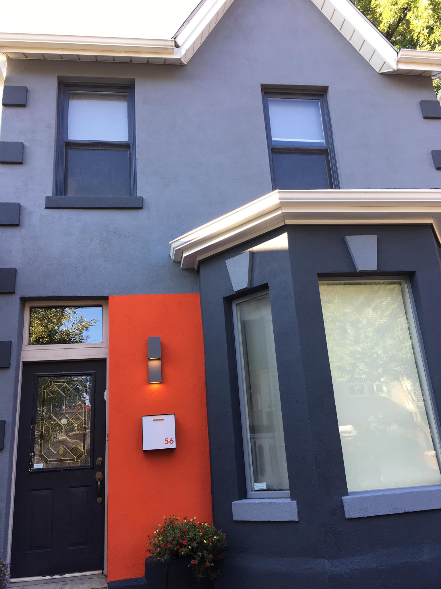 This house was built in 1856! It’s been through a lot over the years. When we purchased the home in 2005 it was glitter infused teal stucco with white trim. We turned it a taupe/grey with burgundy, greige and black and in 2022 went bold with several shades of blue/grey, bright orange and awaiting a stunning custom purple modern door. God Bless John Bell and his company for the incredible service with a smile – hire them if you ever want to paint your home. A stunning transformation at a very reasonable cost. This was August, 2022 around here!