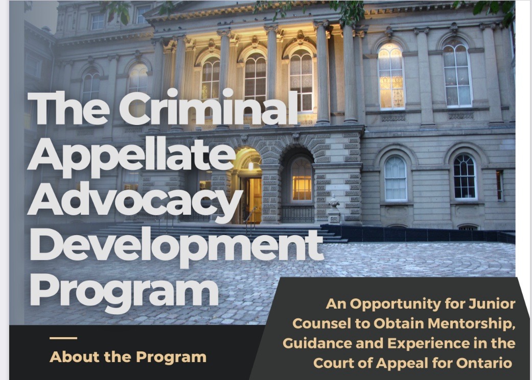 In 2022 WiCCD members were offered an opportunity to apply to participate in what is now the Ontario Court of Appeal’s Rosenberg Criminal Appellate Advocacy Development Program. The program links junior counsel with senior mentors and affords an opportunity to participate in a mock appeal and get feedback from Justices, all in a safe environment. WiCCD is a partner organization in this unique, first of its kind initiative.