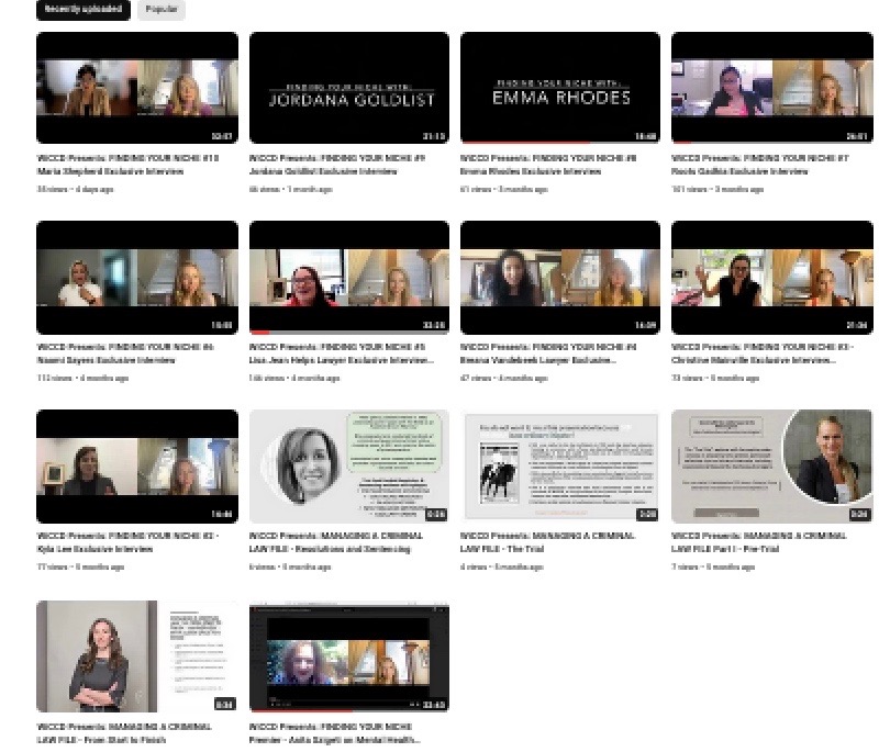 WiCCD is fortunate to have a wealth of subject matter experts in Criminal Defence. We relied on our senior counsel to run a number of series of CPDs on Managing a Criminal Law File from Start to Finish, on Complex Bails and other practice and ethics sessions. We are grateful to our members for their generosity, giving us their time and effort to educate newer / younger members of the bar. We recorded most sessions and obtained CPD accreditation from the LSO for most. Some were approved for CPD in other provinces as well.