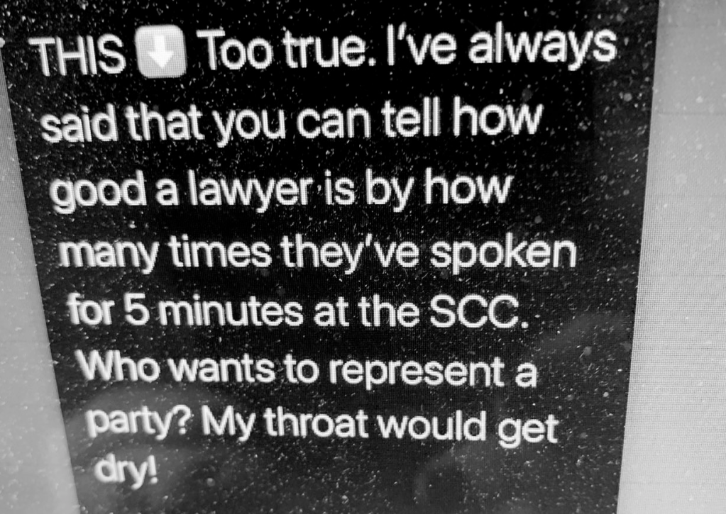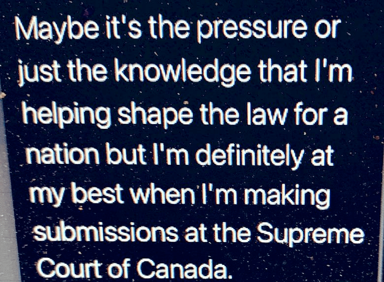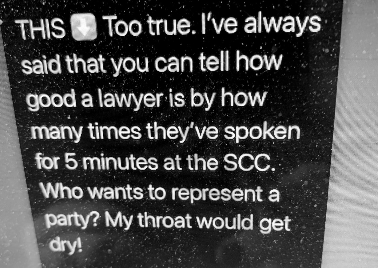 Today I had occasion to reflect on the pathological harassment I was subjected to for a prolonged period. Among the many things my stalkers tried to use to diminish my professional success, confidence or popularity was to suggest that the SCC litigation I did was worthless. 1/2