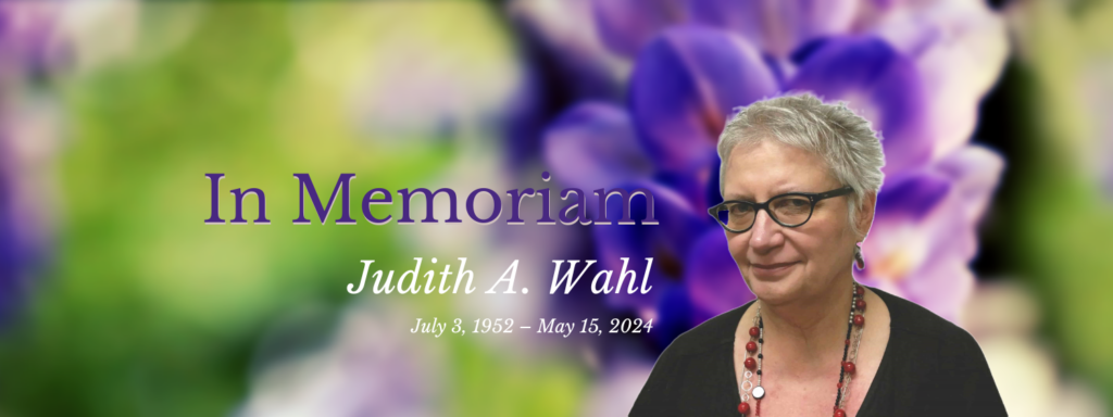 Our dear friend and cherished colleague, the incomparable Judith Wahl has died, on May 15, 2024.