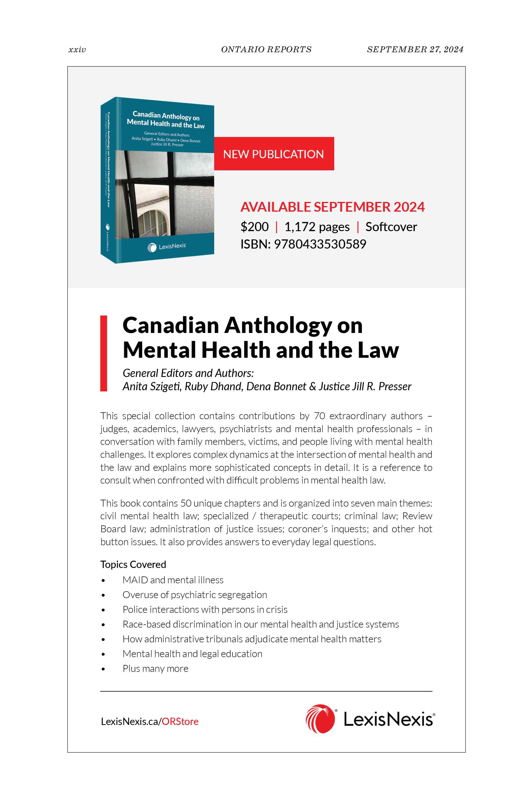 Canadian Anthology on Mental Health and the Law (CAMHL) Finally Arrives – a BIG Success Story — Out in Print Friday September 27, 2024