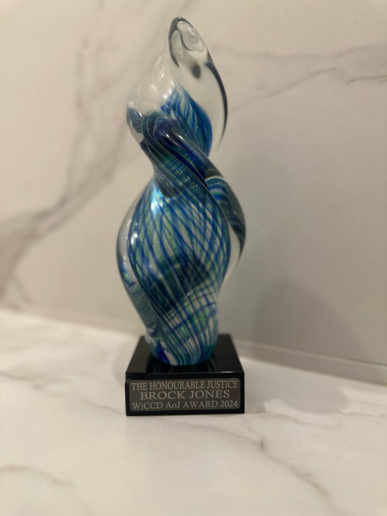 The Honourable Brock B. Jones was Awarded WiCDD’s First Ever Administration of Justice Award (2024) for his incredible support of WiCCD and fostering collegiality in the bar through education.