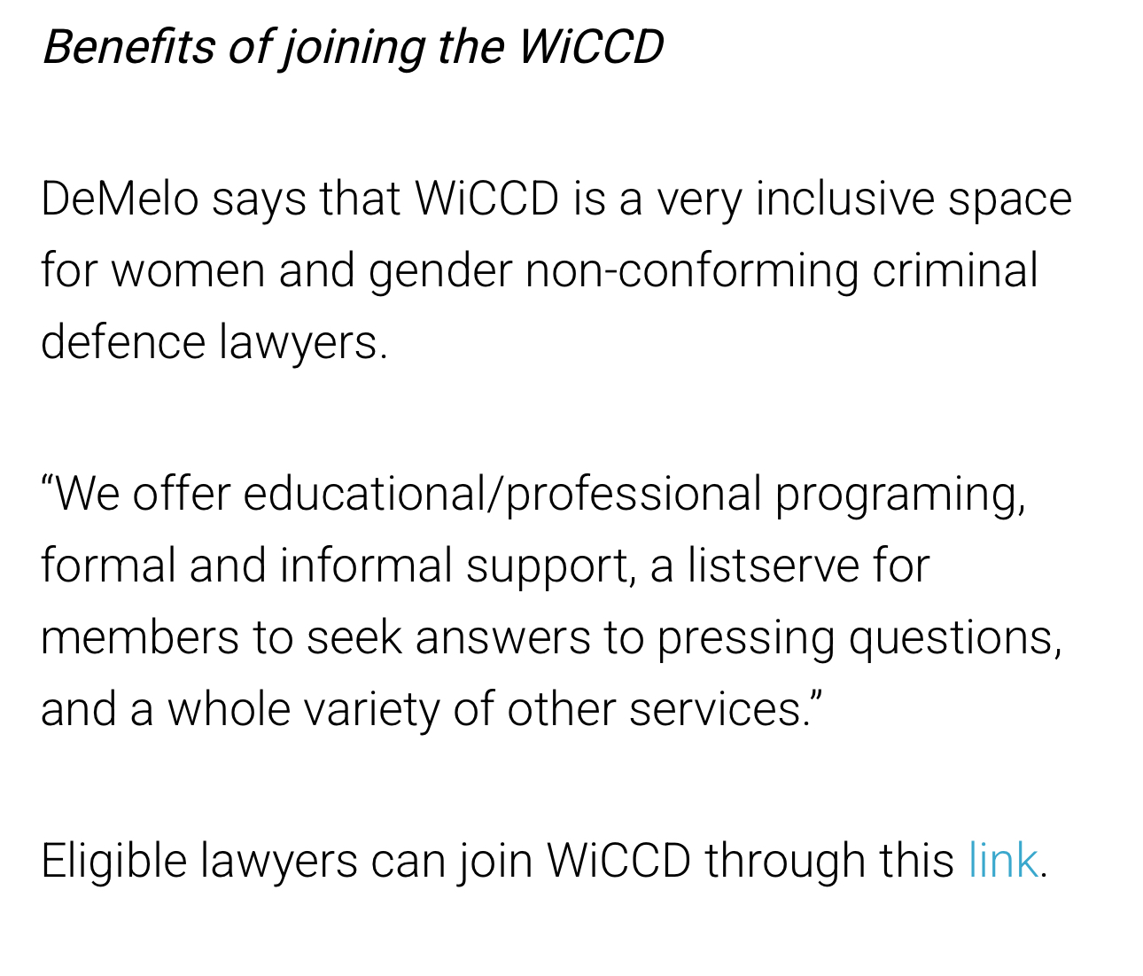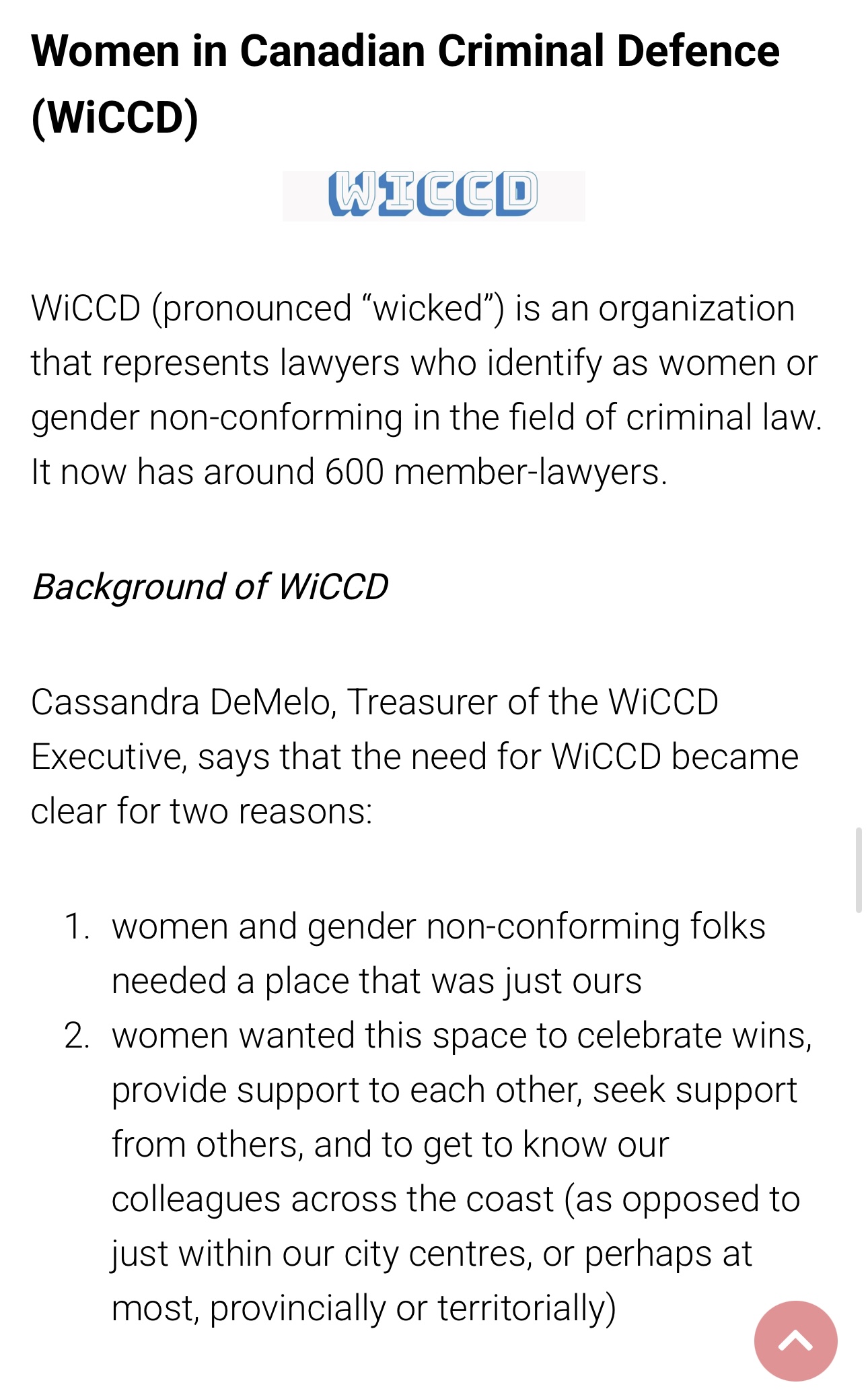* Founder and Secretary to Women in Canadian Criminal Defence - WiCCD - since 2022