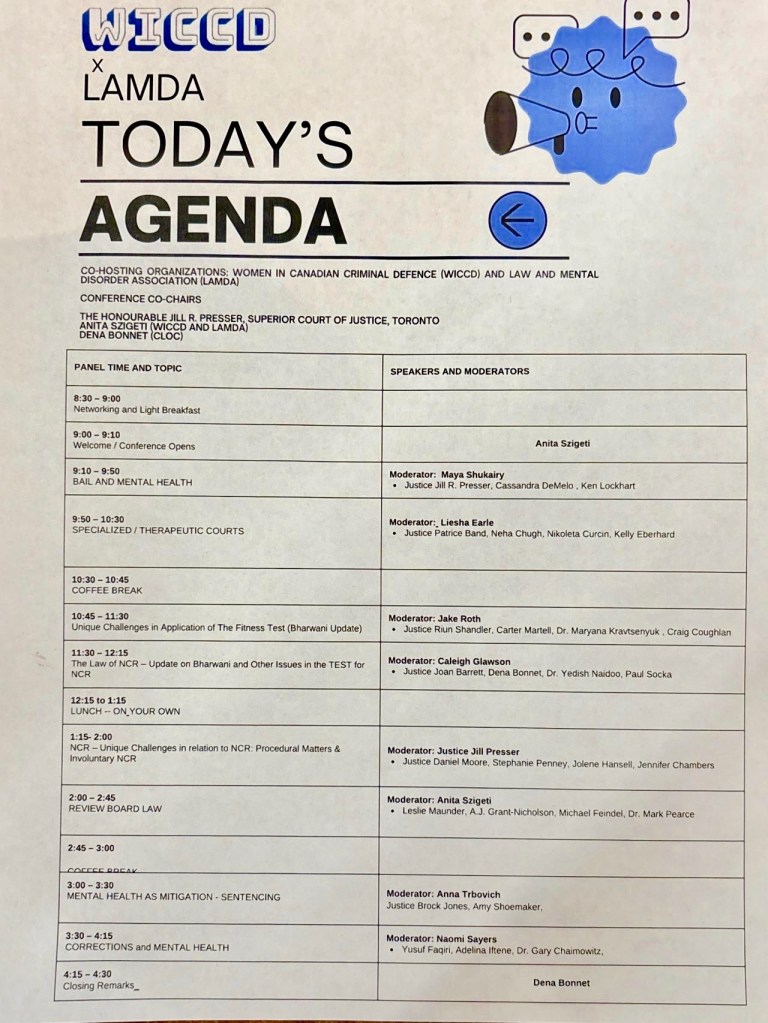 LAMDA and WiCCD held our first Mental Disorder and the Criminal Law Conference on Saturday, April 26, 2025, at Toronto Metropolitan University.