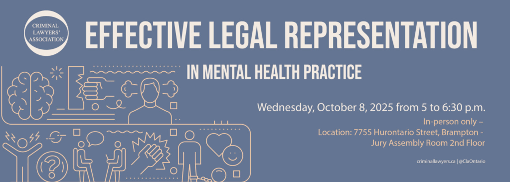 Join us for an in-person discussion focused on effectively supporting clients facing mental health challenges within the criminal justice system. This panel brings together the Crown, Defence, and Judiciary to share their perspectives and experiences.