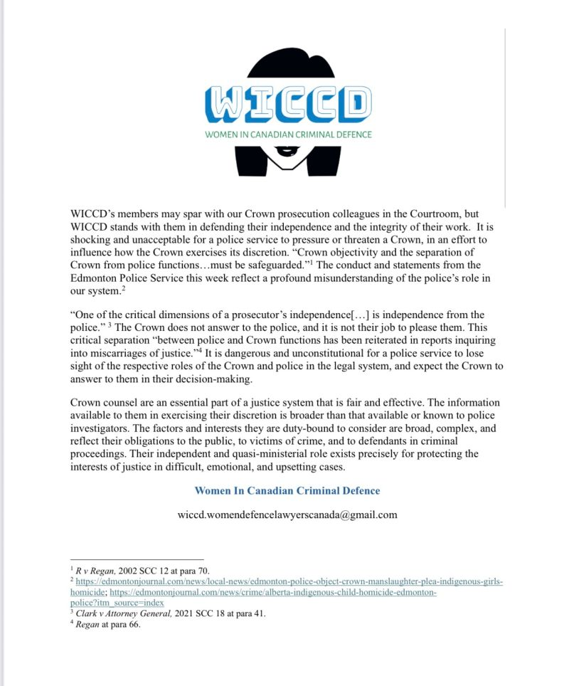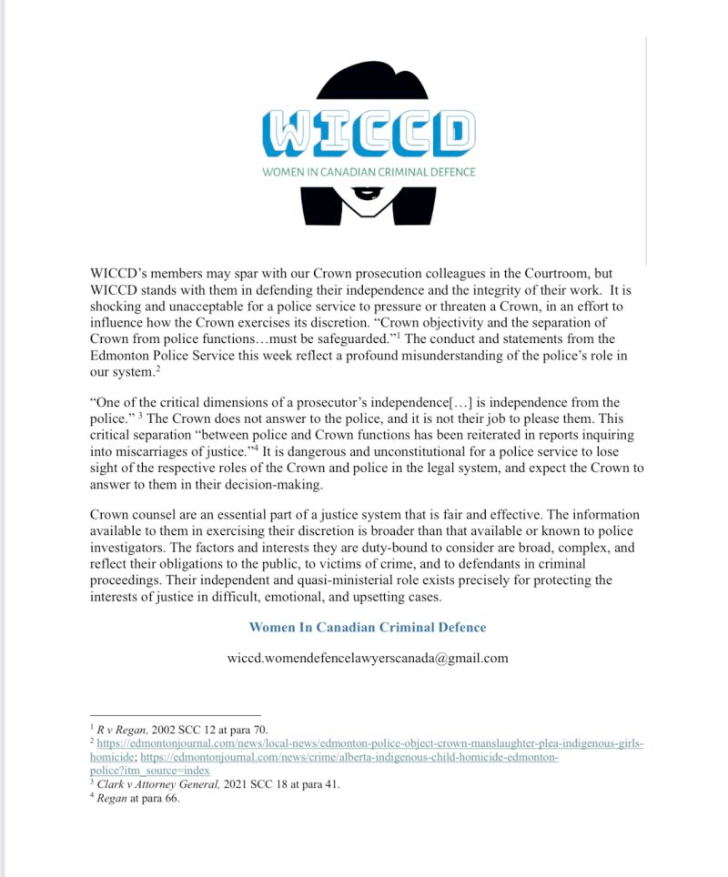 * Founder and Secretary to Women in Canadian Criminal Defence - WiCCD - since 2022