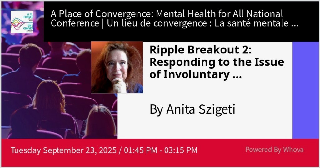 My thanks to the organizers of the Canadian Mental Health Association‘s National Conference for including me on a panel to discuss responses to attempts and introduction of coercive legislation mandating involuntary detention and forced treatment for drug users. It was a privilege to be on a panel with @Zoë Dodd and others.