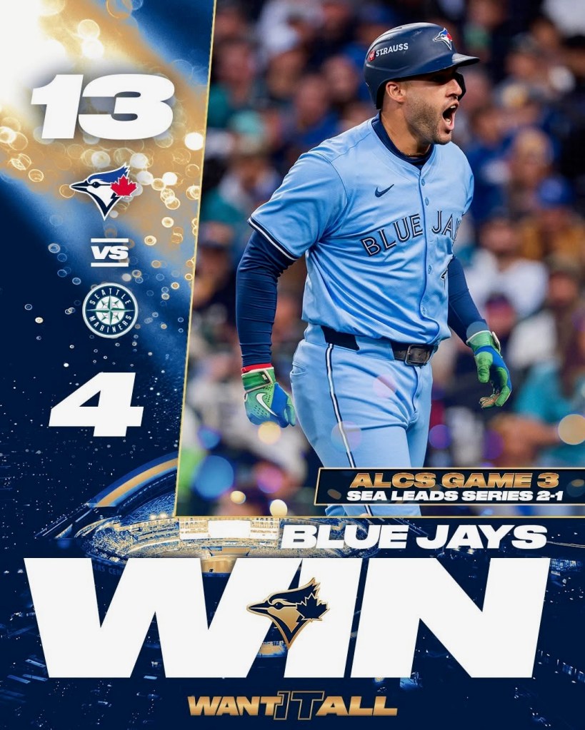 And our Backs are Up Against the Wall again – Jays now down 3-2 in the ALCS with 2 must win games ahead – they’re coming home for Game 6 and God Willing 7