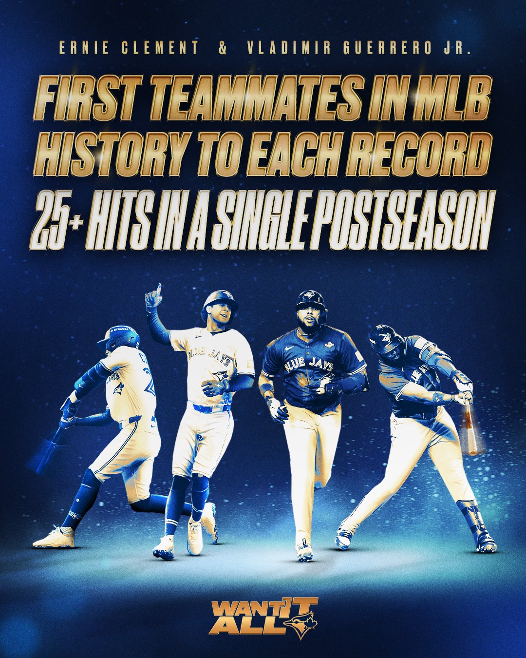 A 6:1 win that started with two back to back home runs by newest lead-off hitter (just for a minute while Springer heals his tummy) – Davis Schneider and an 8th home run of the post-season for Vladdy and it never really let up. I feel for Blake Snell, again possibly the nicest guy in the world – who said he learned a lot from the first outing that went south for him in Game 1 – but I guess he hadn’t learned quite enough. We still had his number although he did pitch a good enough game, just not actually enough.