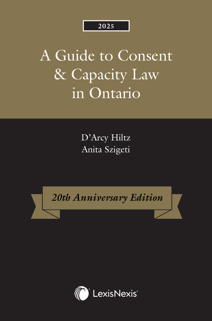 I have co-authored five text books in this area and the Guide to Consent and Capacity Law in Ontario is the “seminal” book on the topic according to at least one Judge who said so in a case. It’s the book used by everyone who is serious about this area of the law.
