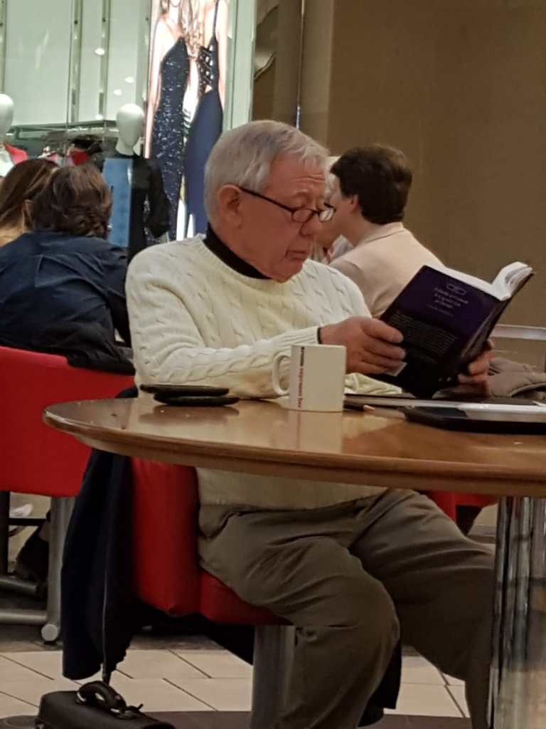 I spotted this gentleman in a food court at a mall a few years back casually perusing our CCB text!